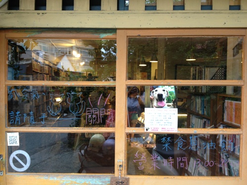 透明窗戶上其中,寫了最重要的一行:「禁食蔥油餅」,同時我也在這呼應喜歡去時光的朋友們,可別帶油香的蔥油餅入內,免的沾到書本可就不好囉(因為時光位在蔥油餅街的附近)